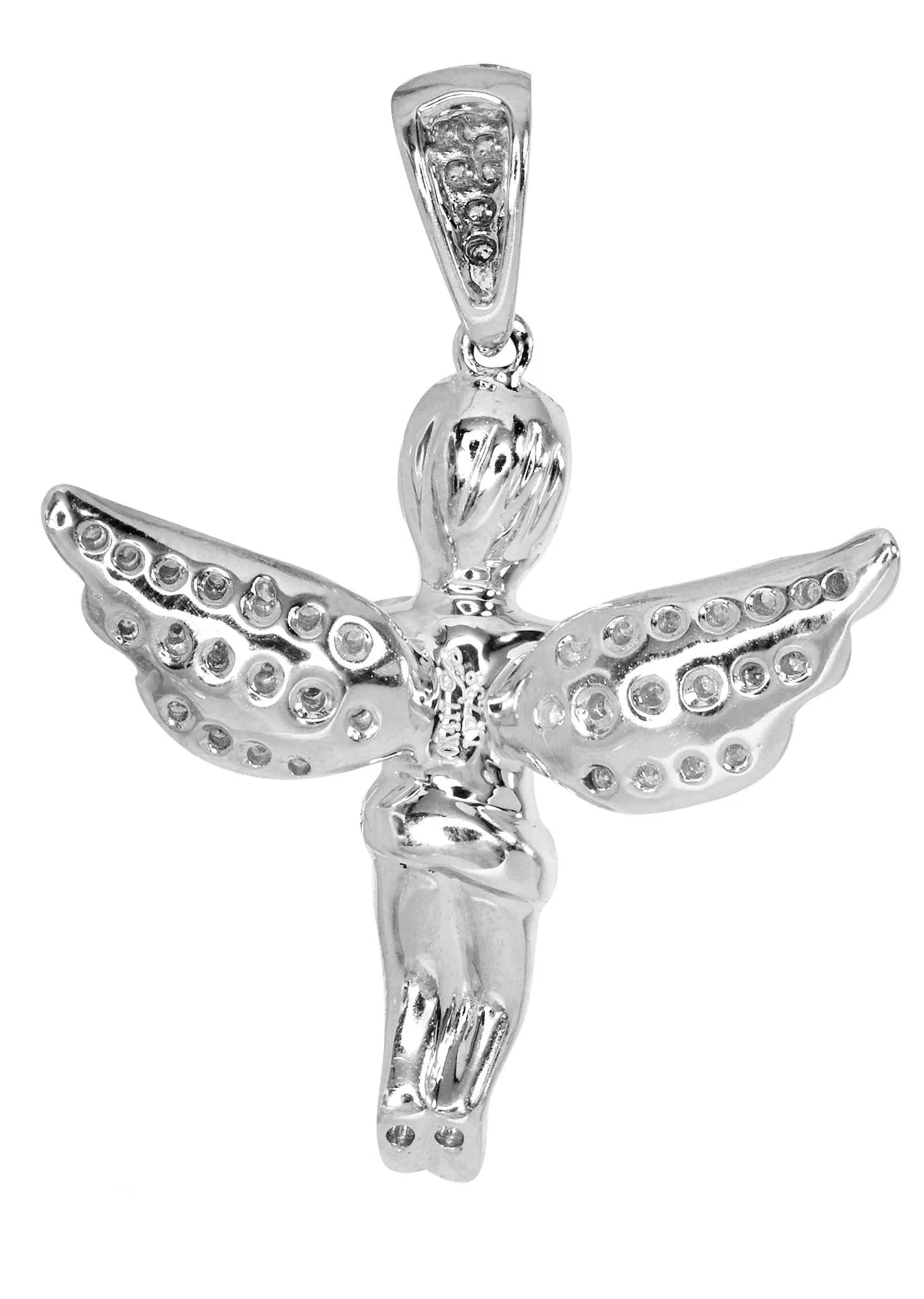 Angel Pendant In 10K White Gold Weighing 4.77 Grams With 0.59 Carats Of Diamonds