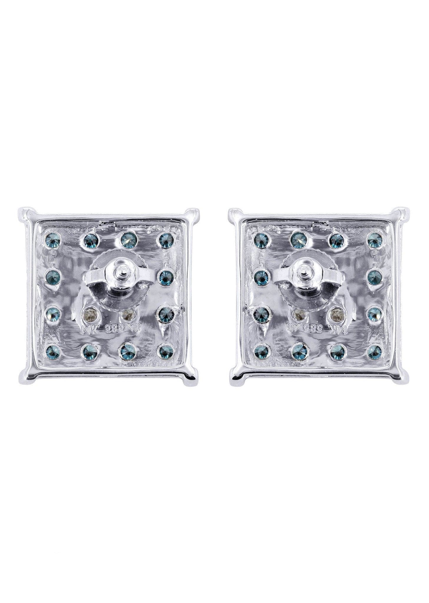 Blue And White Diamond Earrings In 14K White Gold With Approximately 0.61 Carats Of Diamonds.Earrings Come With An Average Length Of 12 Mm And 12 Mm In Width.