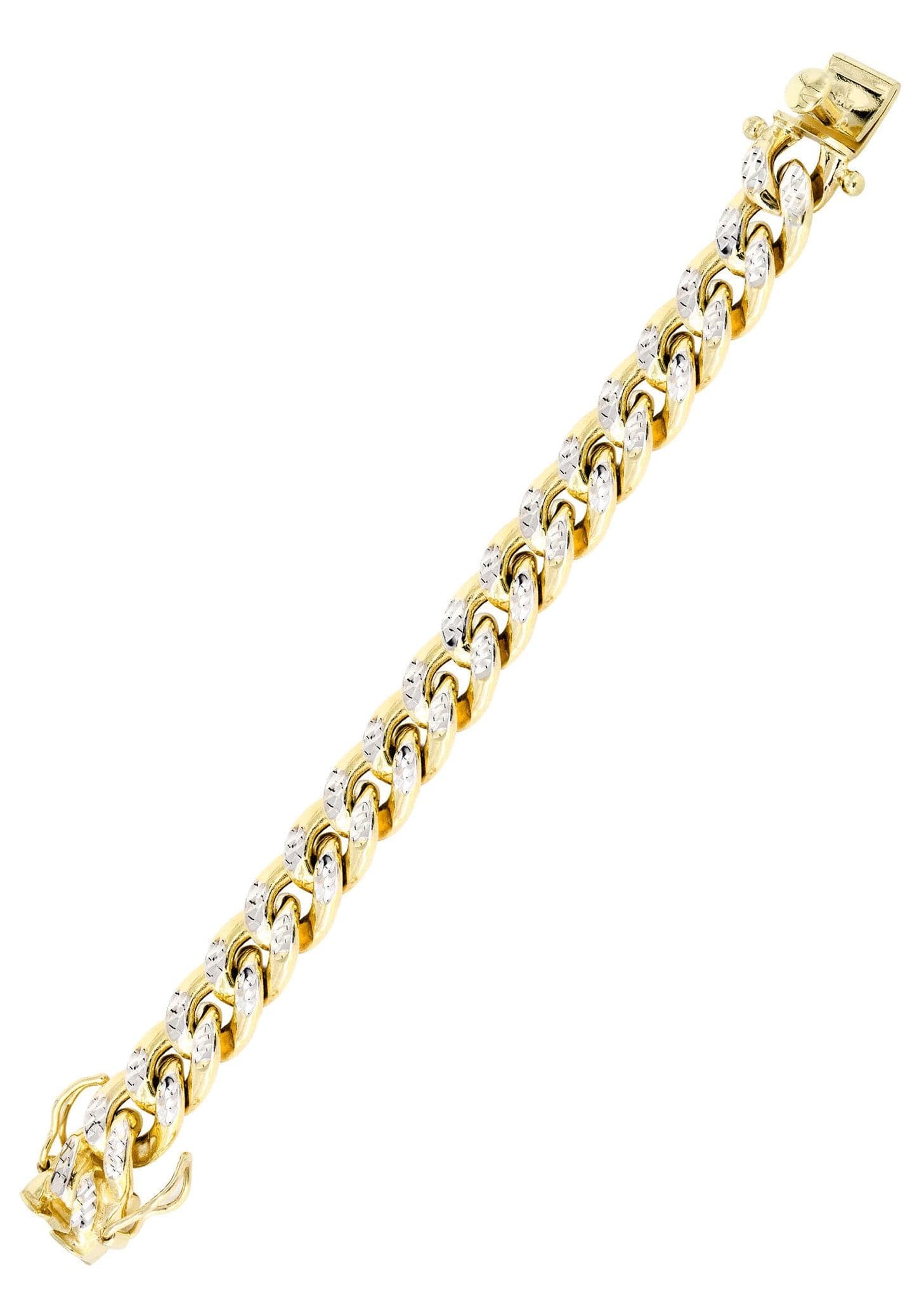 Semi Solid Mens Diamond Cut Miami Cuban Link Bracelet 10K Gold