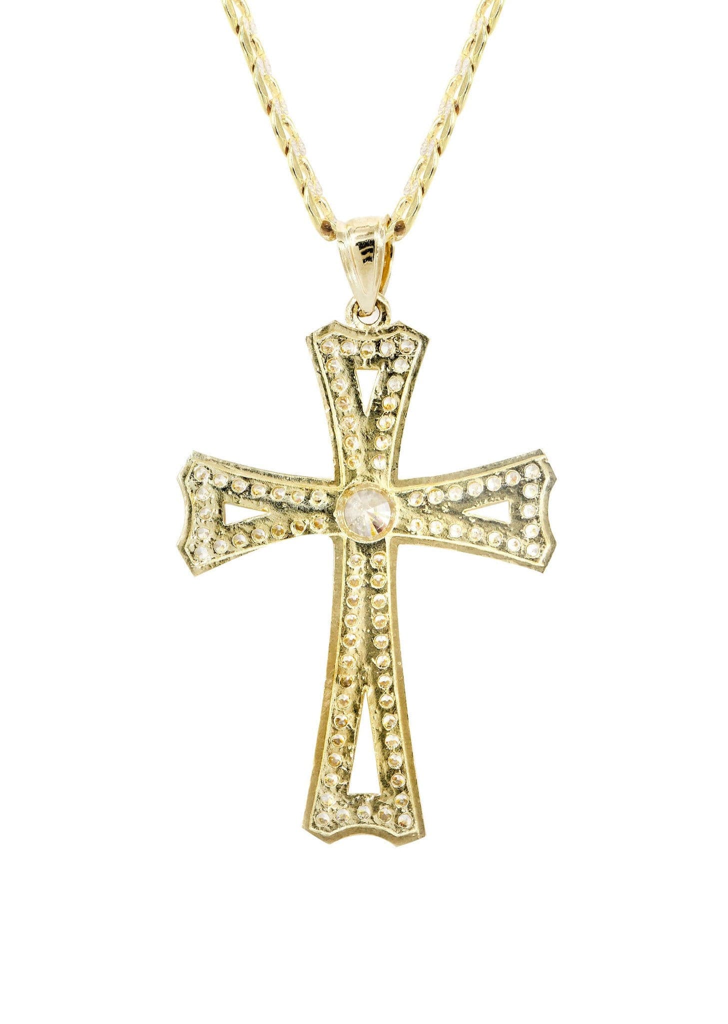 10K Yellow Gold Pave Cross Necklace | Appx. 8.9 Grams