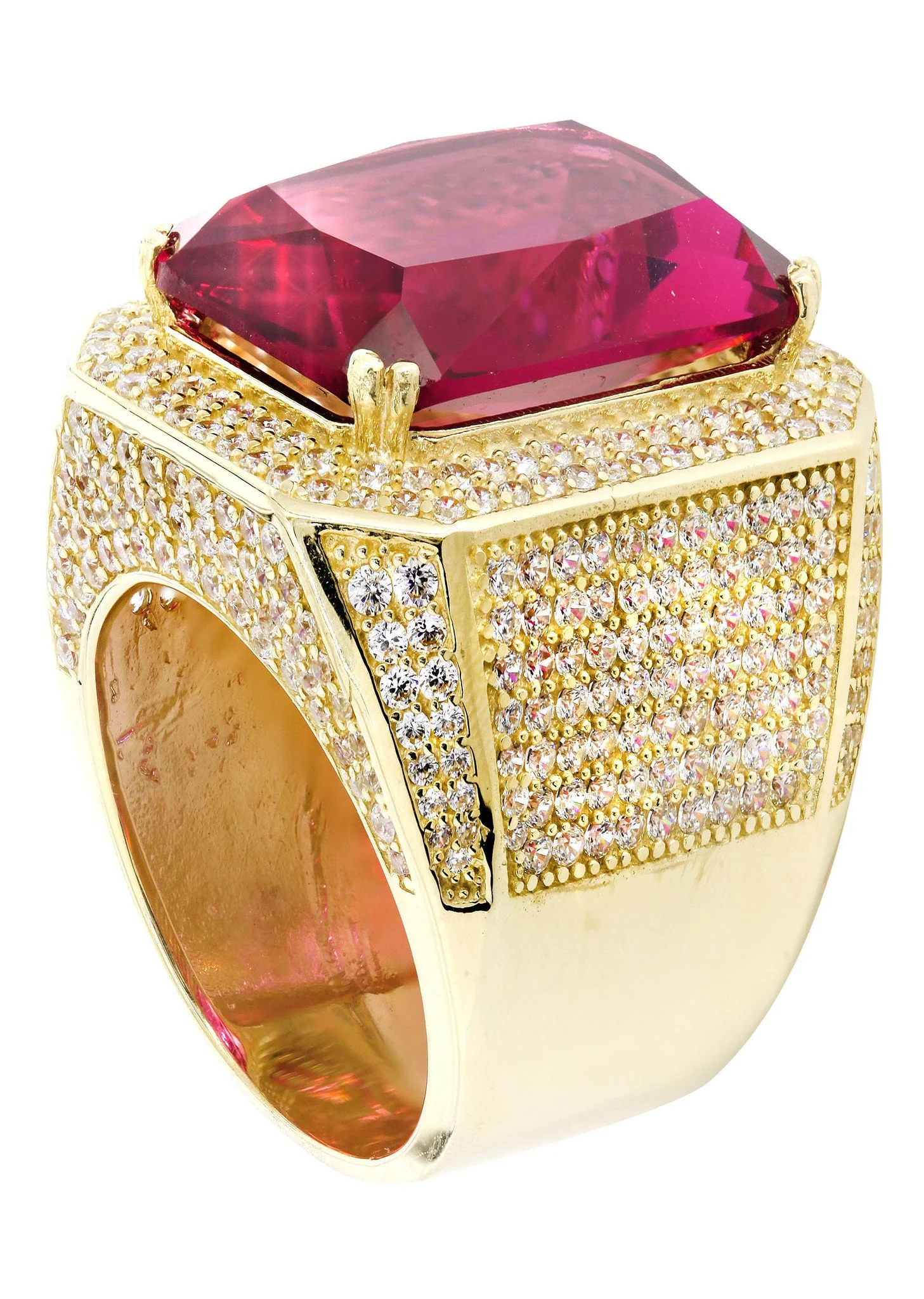 Ruby and Cz 10K Yellow Gold Mens Ring. The Ring Weighs Approximately 26.7 Grams With An Average Length Of 30 Mm And Average Width Of 28 Mm