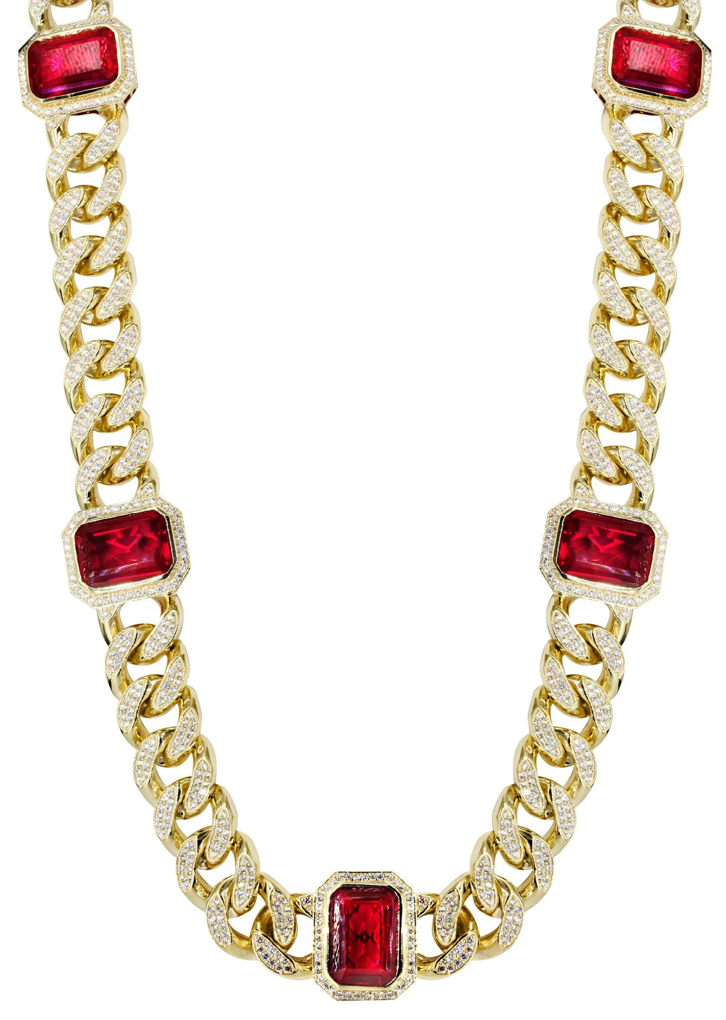 Solid Ruby and Cz Miami Cuban Link Chain 10K Yellow Gold. This chain is fully customizable, so you can pick your length and width above. Once you selected your length and width, you can see the adjusted gram weight above the price.